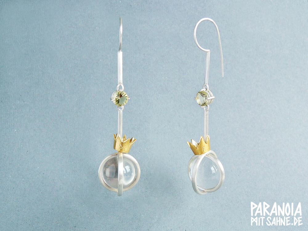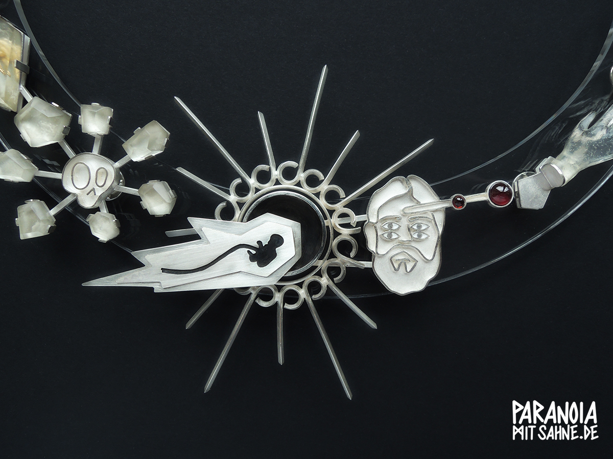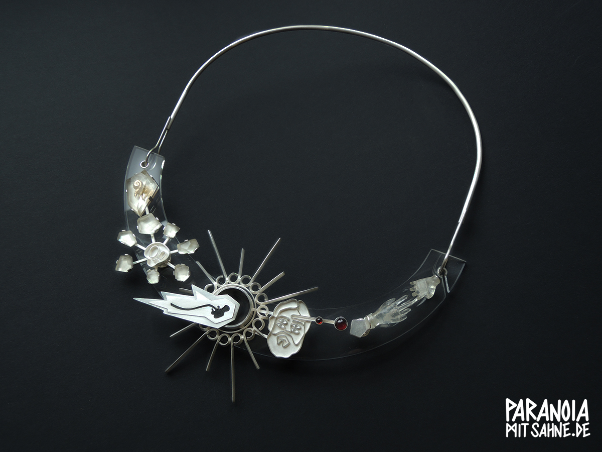Material: Silber, Acrylglas, Epoxidharz, Blattgold, Granat