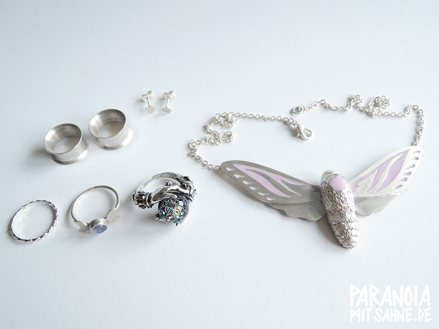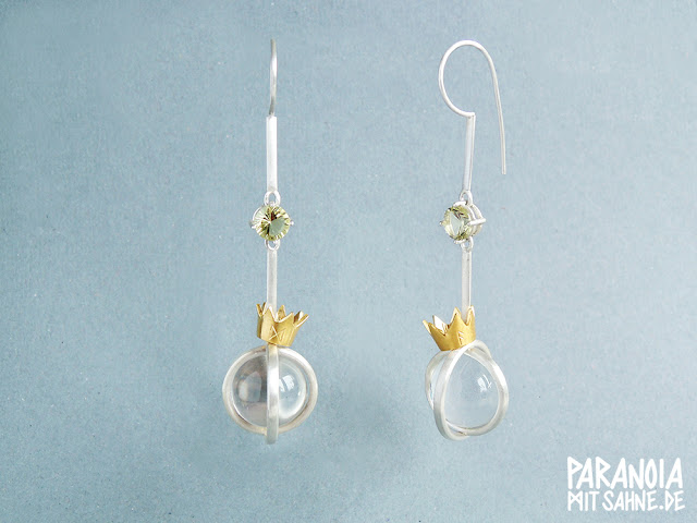 Materialien, wie die Kristalle aus Epoxidharz und dem Silber, Klarheit aus.