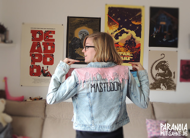 Achja, damit es auch zum Metal Thema passt, kam als erstes mal ein "Druck" von meiner Lieblingsband hinten drauf. Den habe ich natürlich auch selbst gemacht. Da mir dieser Blogpost aber schon wieder zu lange wird und ich eure Aufmerksamkeit nicht verlieren will, schreibe ich über den Rest der Jacke, wie Druck, Silikon Zuckerguss und Pins bzw. Patches in den nächsten Blogpost(s) :)